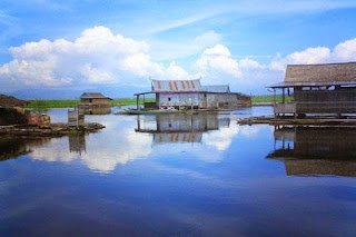 Rumah-rumah panggung khas suku Bugis mengitari danau Tempe.