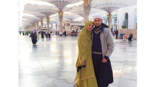 Dalam foto itu terlihat, Teuku Wisnu memakai kopiah putih dan jaket sedang menggandeng tangan Shireen yang memakai penutup wajah berwarna hitam. Mesjid Nabawi berada di sebelah kiri keduanya.