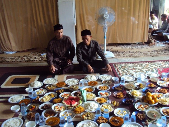 | Maulid di rumah warga, biasanya diawali dengan ceramah lalu menyantap hidangan khas Aceh |