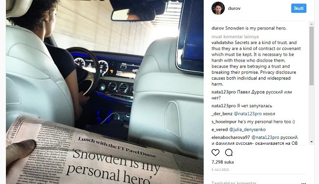 Dia kemudian mulai kehilangan kendali VKontakte setelah berseberangan dengan investor yang berafiliasi dengan layanan Mail.ru, perusahaan yang memiliki hubungan dengan Kremlin. Dia tetap menantang dan memasang foto yang sekarang dihapus di Instagramnya di mana dia menunjukkan kepada para investor jari tengahnya tanda kemarahannya.