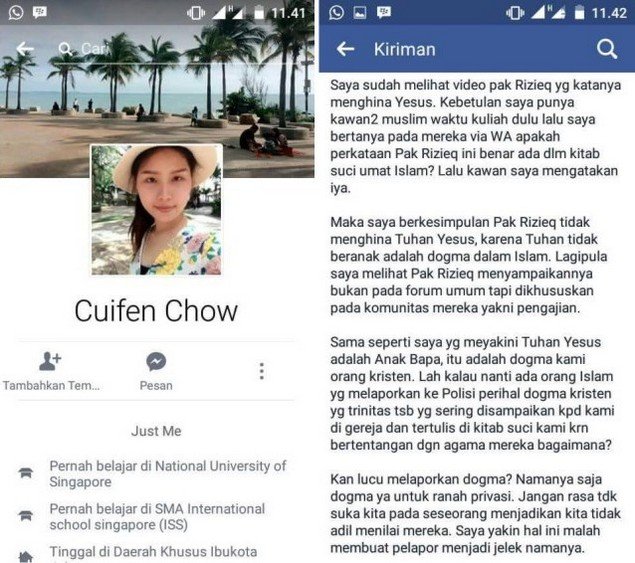 Beberap saat setelah Imam Besar Front Pembela Islam (FPI) Habib Rizieq Syihab dilaporkan oleh Persatuan Mahasiswa Katolik Republik Indonesia (PMKRI) ke Polda Metro Jaya, seorang netizen bernama Cuifen Chow menjadi perbincangan.