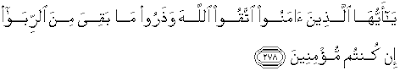 orang-orang yang beriman, bertakwalah kepada Allah dan tinggalkan sisa riba