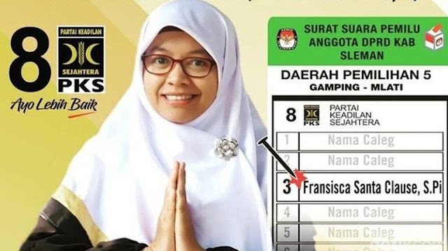 (baca : Viral Caleg PKS di Sleman Yogyakarta Namanya Fransisca Santa Clause).